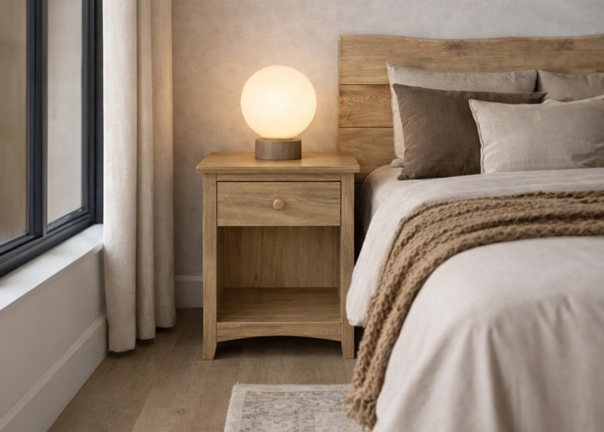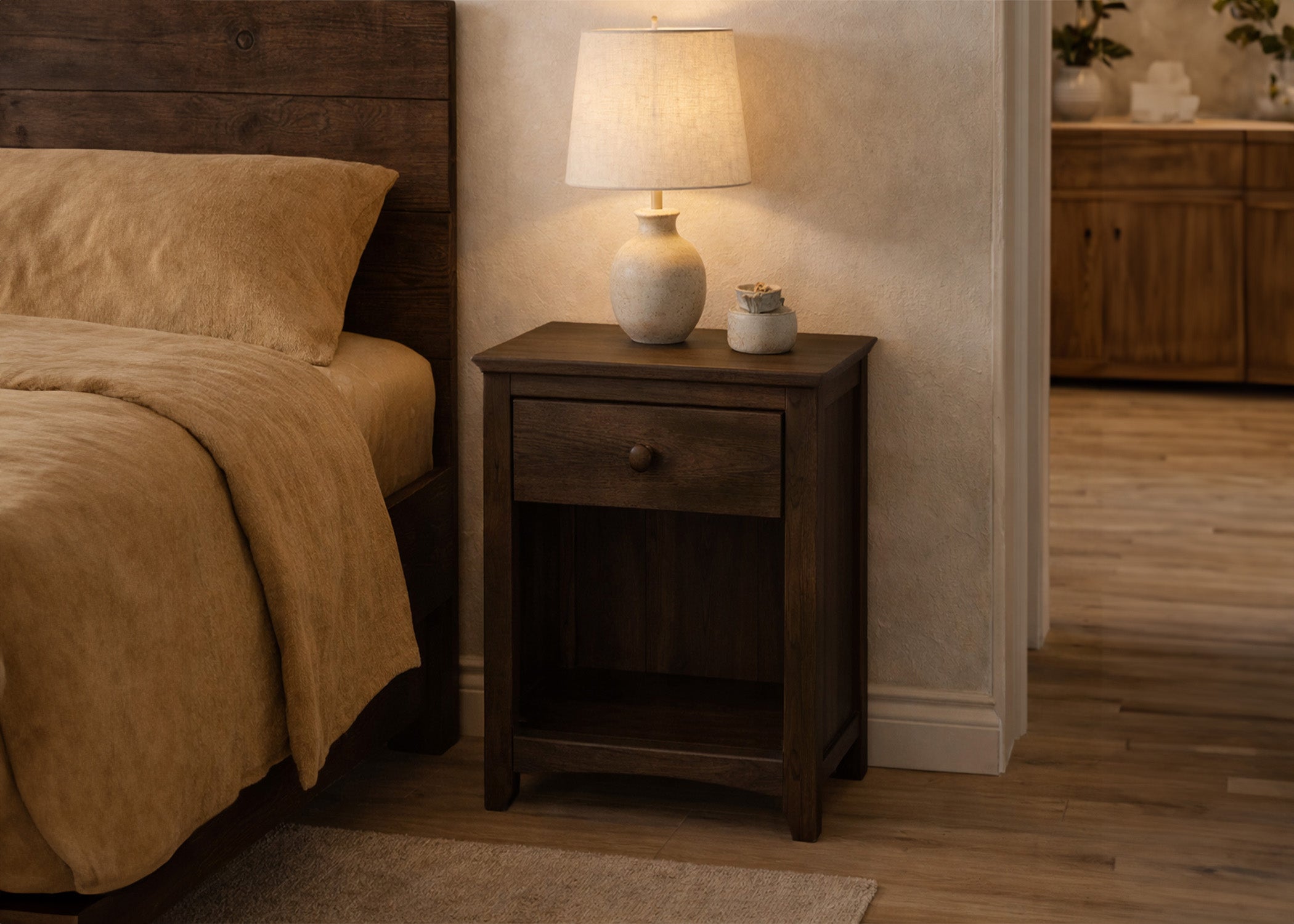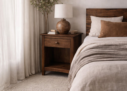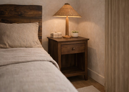 This nightstand is hand finished in our shop in Colorado. We source this nightstand from a top-notch supplier, and finish it to match your preferences