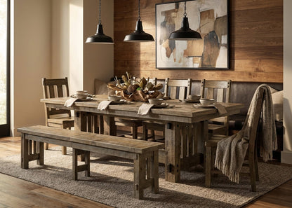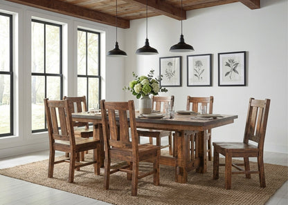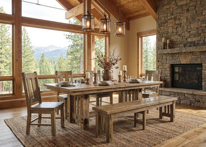 Beautiful trestle table with rough sawn texture. Built by hand in the USA by one of our partner builders.