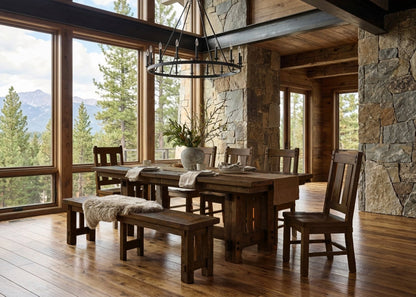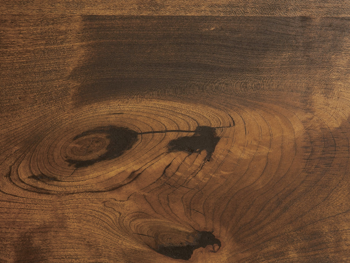This table is built using rustic-grade hardwood, which includes natural knots, voids, and character marks. Larger knots are structurally stabilized and filled with black epoxy—these areas will vary in size, shape, and placement on every piece.
